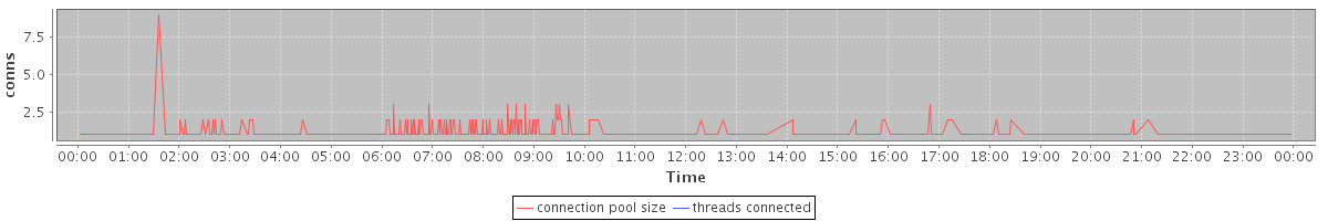 avg(connection pool size) = 0.38 avg(threads connected) = 0.00