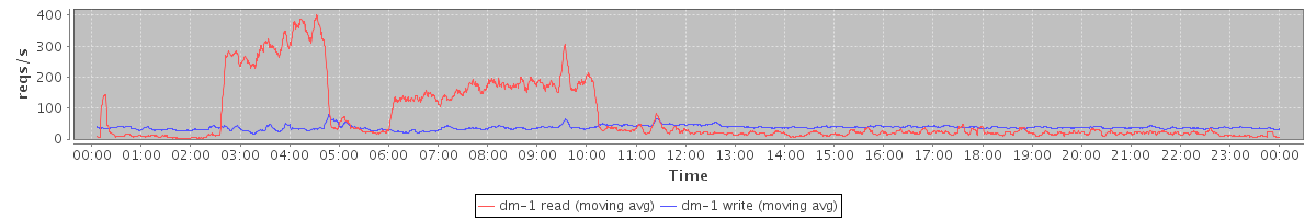 avg(dm-1 read) = 1101.85 avg(dm-1 write) = 801.98