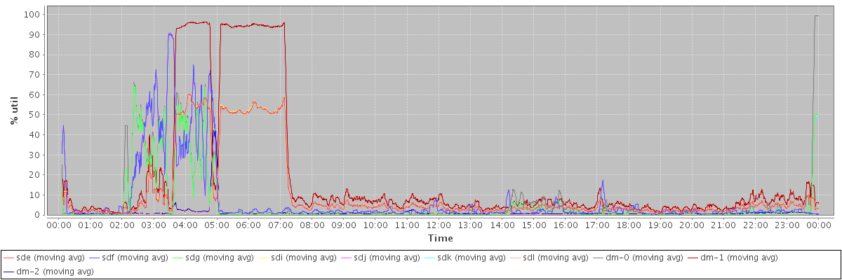 avg(sde) = 10.61 avg(sdf) = 6.93 avg(sdg) = 5.01 avg(sdi) = 10.64 avg(sdj) = 6.93 avg(sdk) = 5.01 avg(sdl) = 0.59 avg(dm-0) = 6.32 avg(dm-1) = 18.59 avg(dm-2) = 0.99