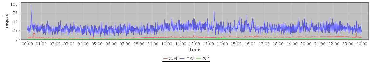 Host zm06.stanford.edu: Mailboxd: Request Rate by Client Protocol