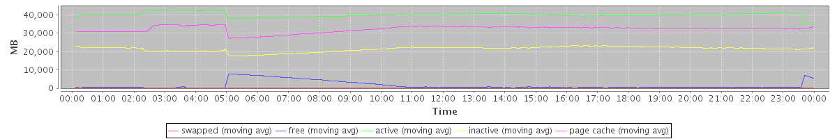 avg(swapped) = 43.85 avg(free) = 1577.94 avg(active) = 40086.26 avg(inactive) = 21392.11 avg(page cache) = 32277.08