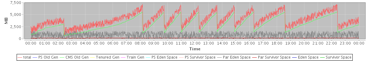 avg(total) = 3986.42 avg(PS Old Gen) = 0.00 avg(CMS Old Gen) = 3018.38 avg(Tenured Gen) = 0.00 avg(Train Gen) = 0.00 avg(PS Eden Space) = 0.00 avg(PS Survivor Space) = 0.00 avg(Par Eden Space) = 821.72 avg(Par Survivor Space) = 146.32 avg(Eden Space) = 0.00 avg(Survivor Space) = 0.00