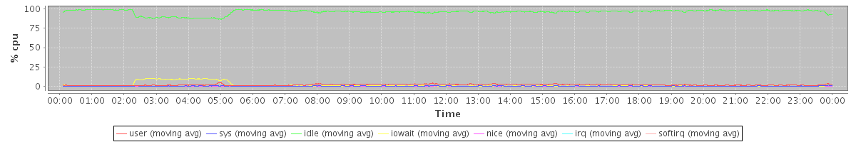 avg(user) = 1.92 avg(sys) = 0.39 avg(idle) = 95.99 avg(iowait) = 1.66 avg(nice) = 0.00 avg(irq) = 0.00 avg(softirq) = 0.02