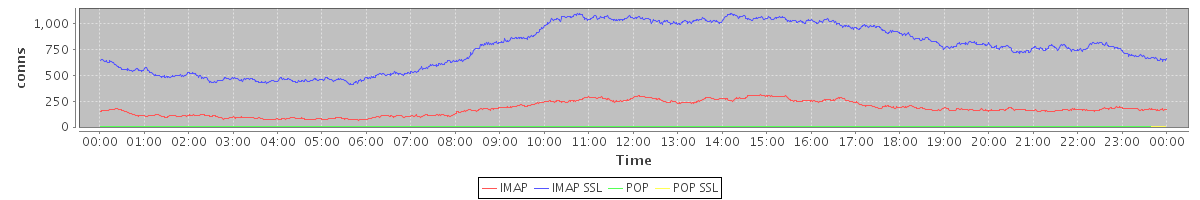 Host zm06.stanford.edu: Mailboxd: Active Connections by Client Protocol