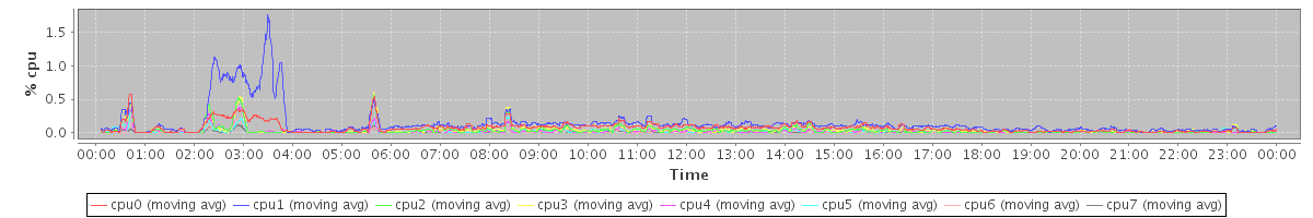 avg(cpu0) = 0.07 avg(cpu1) = 0.14 avg(cpu2) = 0.03 avg(cpu3) = 0.04 avg(cpu4) = 0.02 avg(cpu5) = 0.02 avg(cpu6) = 0.01 avg(cpu7) = 0.01
