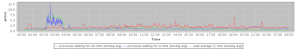 avg(processes waiting for run time) = 1.22 avg(processes waiting for io time) = 0.45 avg(load average (1 min)) = 1.32