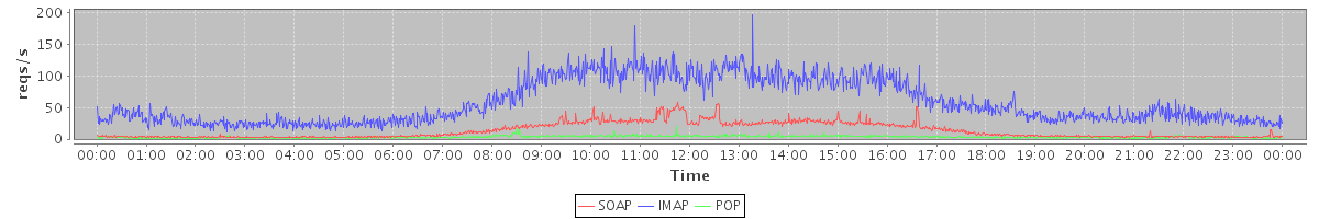 Host zm07.stanford.edu: Mailboxd: Request Rate by Client Protocol