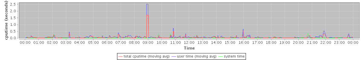 avg(total cputime) = 0.01 avg(user time) = 0.01 avg(system time) = 0.00