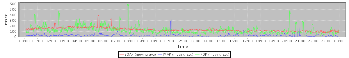 avg(IMAP) = 142.98 avg(IMAP SSL) = 579.52 avg(POP) = 0.08 avg(POP SSL) = 0.31