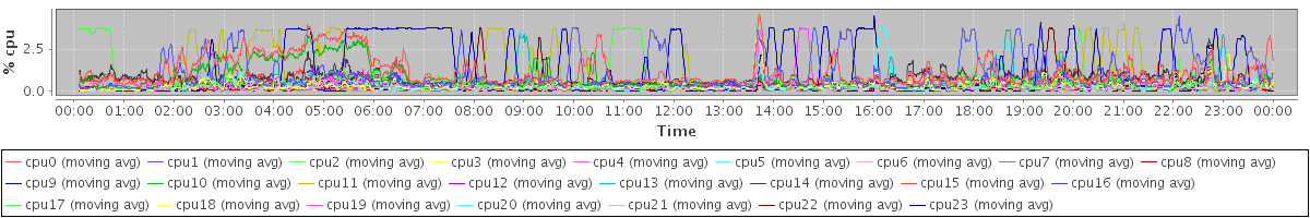 avg(cpu0) = 0.10 avg(cpu1) = 0.06 avg(cpu2) = 0.03 avg(cpu3) = 0.03 avg(cpu4) = 0.02 avg(cpu5) = 0.03 avg(cpu6) = 0.01 avg(cpu7) = 0.01 avg(cpu8) = 0.00 avg(cpu9) = 0.00 avg(cpu10) = 0.07 avg(cpu11) = 0.00 avg(cpu12) = 0.01 avg(cpu13) = 0.01 avg(cpu14) = 0.01 avg(cpu15) = 0.01 avg(cpu16) = 0.01 avg(cpu17) = 0.01 avg(cpu18) = 0.01 avg(cpu19) = 0.01 avg(cpu20) = 0.02 avg(cpu21) = 0.00 avg(cpu22) = 0.00 avg(cpu23) = 0.00