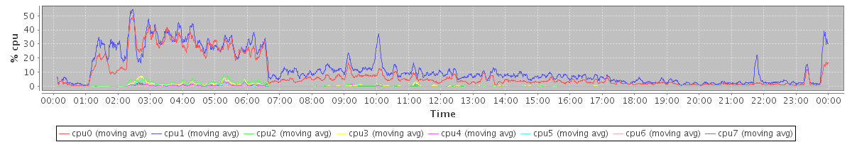 avg(cpu0) = 1.21 avg(cpu1) = 1.19 avg(cpu2) = 0.76 avg(cpu3) = 0.76 avg(cpu4) = 0.50 avg(cpu5) = 0.49 avg(cpu6) = 0.35 avg(cpu7) = 0.34