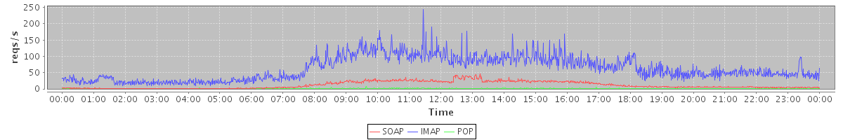 Host zm01.stanford.edu: Mailboxd: Request Rate by Client Protocol