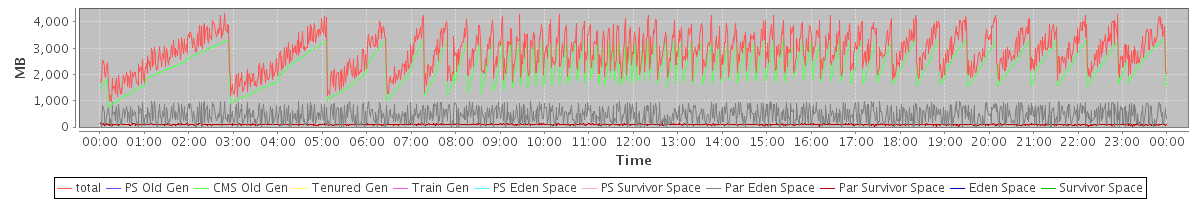 avg(total) = 2865.87 avg(PS Old Gen) = 0.00 avg(CMS Old Gen) = 2311.30 avg(Tenured Gen) = 0.00 avg(Train Gen) = 0.00 avg(PS Eden Space) = 0.00 avg(PS Survivor Space) = 0.00 avg(Par Eden Space) = 462.86 avg(Par Survivor Space) = 91.71 avg(Eden Space) = 0.00 avg(Survivor Space) = 0.00