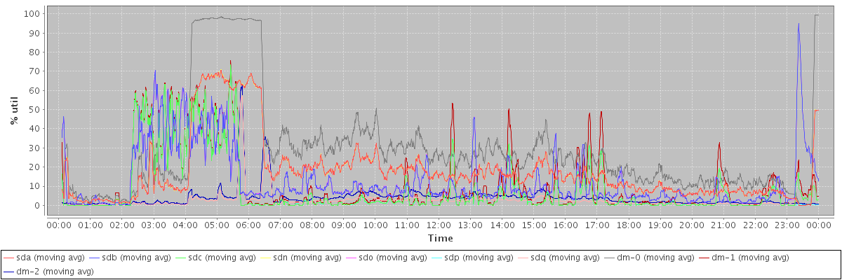 avg(sda) = 18.09 avg(sdb) = 13.02 avg(sdc) = 8.66 avg(sdn) = 18.08 avg(sdo) = 12.03 avg(sdp) = 8.46 avg(sdq) = 3.66 avg(dm-0) = 28.95 avg(dm-1) = 10.55 avg(dm-2) = 3.88