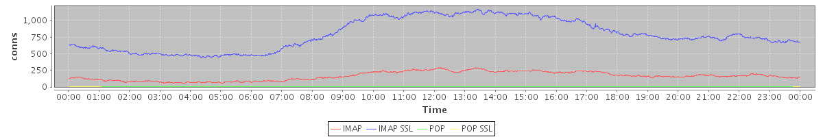 avg(IMAP) = 164.19 avg(IMAP SSL) = 785.55 avg(POP) = 0.08 avg(POP SSL) = 0.42
