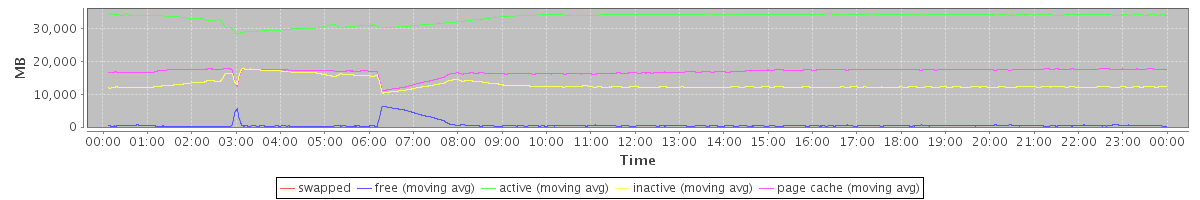 avg(swapped) = 0.00 avg(free) = 648.57 avg(active) = 33272.44 avg(inactive) = 12956.71 avg(page cache) = 16848.00