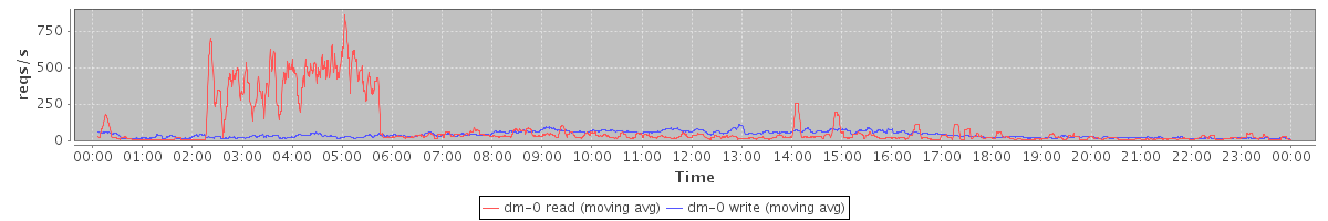 avg(dm-0 read) = 1268.13 avg(dm-0 write) = 531.69