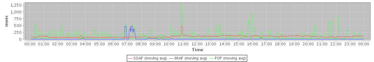 avg(IMAP) = 123.27 avg(IMAP SSL) = 486.54 avg(POP) = 0.06 avg(POP SSL) = 0.66
