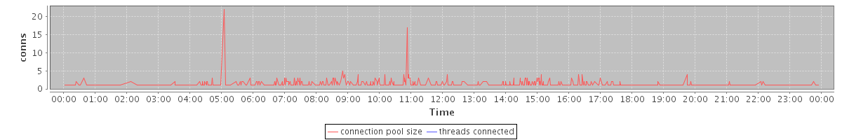 avg(connection pool size) = 0.57 avg(threads connected) = 0.00