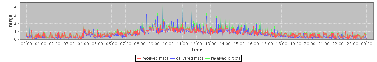avg(received msgs) = 0.73 avg(delivered msgs) = 0.62 avg(received x rcpts) = 0.84