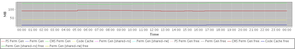 avg(PS Perm Gen) = 0.00 avg(Perm Gen) = 0.00 avg(CMS Perm Gen) = 135.38 avg(Code Cache) = 38.93 avg(Perm Gen [shared-ro]) = 0.00 avg(Perm Gen [shared-rw]) = 0.00 avg(PS Perm Gen free) = 0.00 avg(Perm Gen free) = 0.00 avg(CMS Perm Gen free) = 92.24 avg(Code Cache free) = 7.70 avg(Perm Gen [shared-ro] free) = 0.00 avg(Perm Gen [shared-rw] free) = 0.00