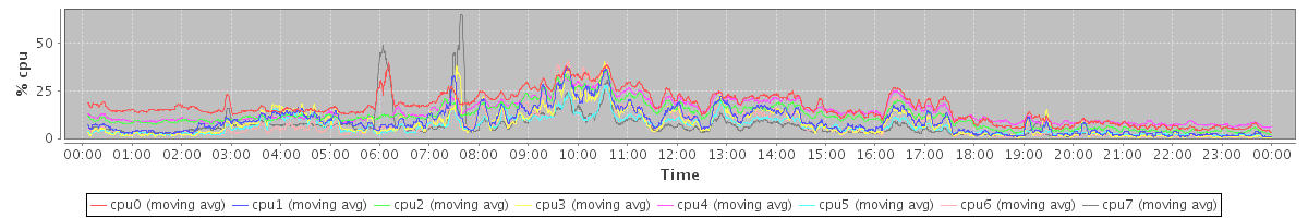 avg(cpu0) = 16.23 avg(cpu1) = 8.98 avg(cpu2) = 11.74 avg(cpu3) = 7.75 avg(cpu4) = 13.89 avg(cpu5) = 6.24 avg(cpu6) = 7.47 avg(cpu7) = 6.44