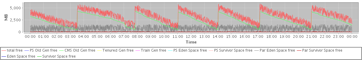 avg(total free) = 3298.87 avg(PS Old Gen free) = 0.00 avg(CMS Old Gen free) = 2428.73 avg(Tenured Gen free) = 0.00 avg(Train Gen free) = 0.00 avg(PS Eden Space free) = 0.00 avg(PS Survivor Space free) = 0.00 avg(Par Eden Space free) = 820.88 avg(Par Survivor Space free) = 49.26 avg(Eden Space free) = 0.00 avg(Survivor Space free) = 0.00