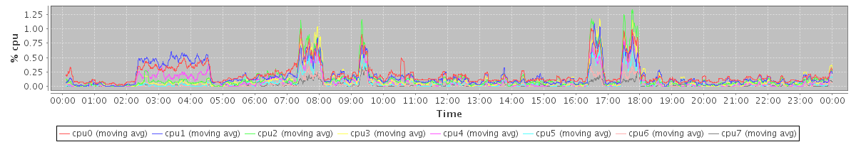 avg(cpu0) = 1.14 avg(cpu1) = 1.03 avg(cpu2) = 0.79 avg(cpu3) = 0.72 avg(cpu4) = 0.59 avg(cpu5) = 0.45 avg(cpu6) = 0.33 avg(cpu7) = 0.29