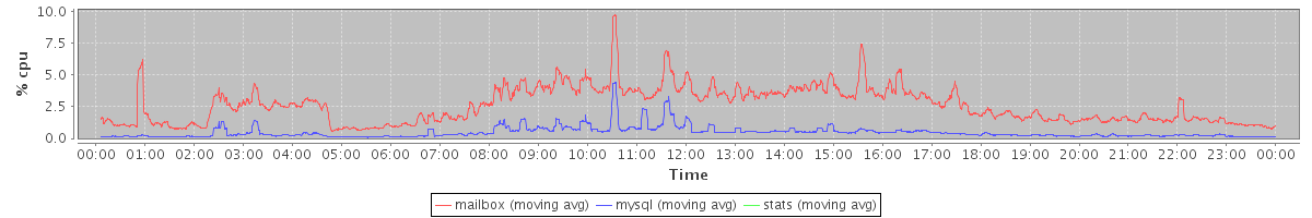 avg(mailbox) = 7108.96 avg(mysql) = 11324.55 avg(stats) = 0.00