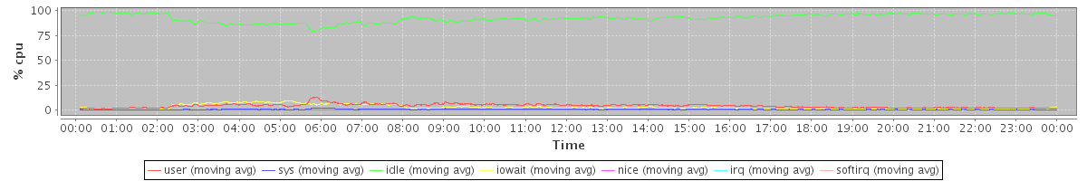 avg(user) = 4.18 avg(sys) = 0.61 avg(idle) = 92.41 avg(iowait) = 2.72 avg(nice) = 0.00 avg(irq) = 0.00 avg(softirq) = 0.08