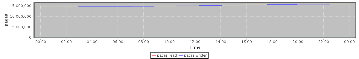 avg(pages read) = 570256.00 avg(pages written) = 15085827.99