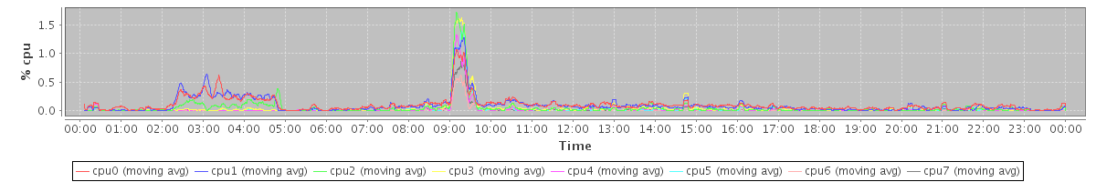 avg(cpu0) = 0.11 avg(cpu1) = 0.10 avg(cpu2) = 0.05 avg(cpu3) = 0.05 avg(cpu4) = 0.03 avg(cpu5) = 0.03 avg(cpu6) = 0.01 avg(cpu7) = 0.02