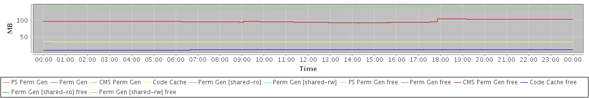 avg(PS Perm Gen) = 0.00 avg(Perm Gen) = 0.00 avg(CMS Perm Gen) = 134.70 avg(Code Cache) = 35.23 avg(Perm Gen [shared-ro]) = 0.00 avg(Perm Gen [shared-rw]) = 0.00 avg(PS Perm Gen free) = 0.00 avg(Perm Gen free) = 0.00 avg(CMS Perm Gen free) = 97.02 avg(Code Cache free) = 11.40 avg(Perm Gen [shared-ro] free) = 0.00 avg(Perm Gen [shared-rw] free) = 0.00