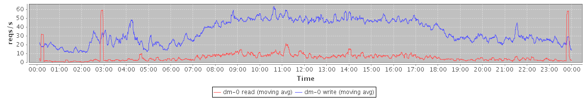 avg(dm-0 read) = 65.04 avg(dm-0 write) = 732.81