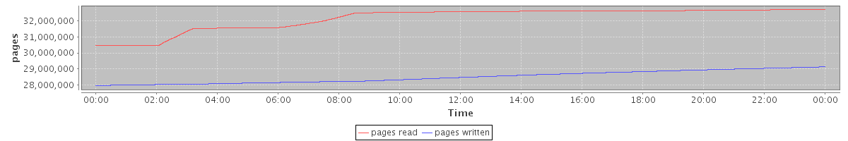 avg(pages read) = 32145268.14 avg(pages written) = 28504543.96