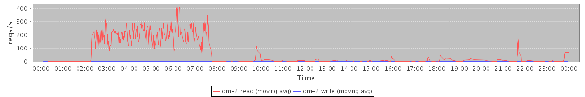 avg(dm-2 read) = 41.23 avg(dm-2 write) = 0.04