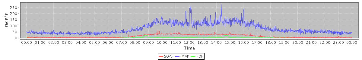 Host zm05.stanford.edu: Mailboxd: Request Rate by Client Protocol