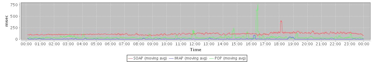 Host zm03.stanford.edu: Mailboxd: Response Time by Client Protocol