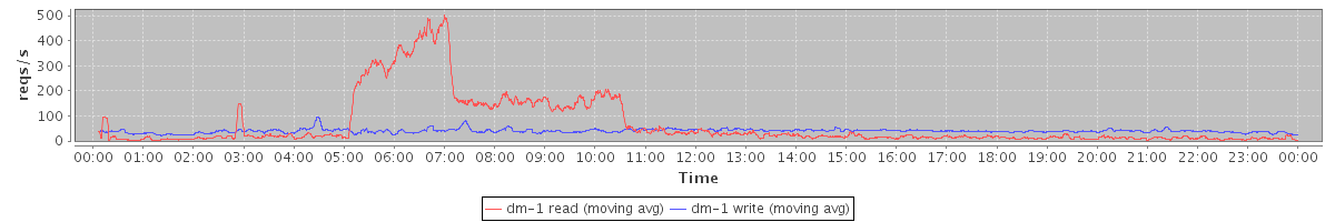 avg(dm-1 read) = 65.79 avg(dm-1 write) = 39.78