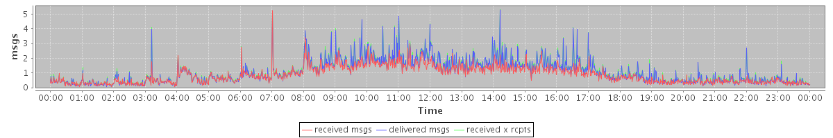avg(received msgs) = 0.87 avg(delivered msgs) = 1.05 avg(received x rcpts) = 1.09