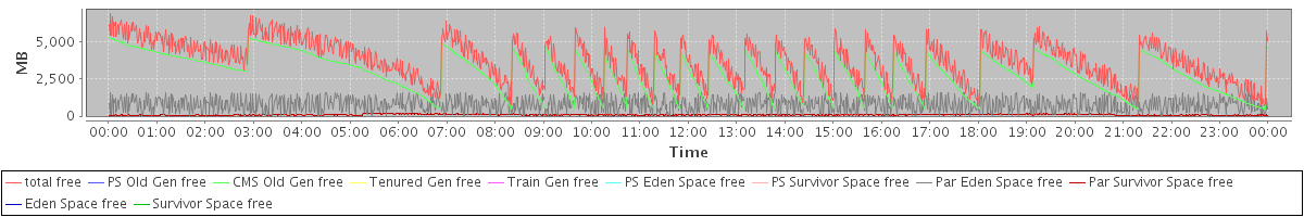 avg(total free) = 3740.48 avg(PS Old Gen free) = 0.00 avg(CMS Old Gen free) = 2863.26 avg(Tenured Gen free) = 0.00 avg(Train Gen free) = 0.00 avg(PS Eden Space free) = 0.00 avg(PS Survivor Space free) = 0.00 avg(Par Eden Space free) = 786.72 avg(Par Survivor Space free) = 90.49 avg(Eden Space free) = 0.00 avg(Survivor Space free) = 0.00