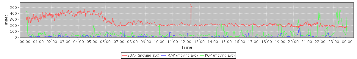 avg(SOAP) = 253.63 avg(IMAP) = 15.52 avg(POP) = 61.35