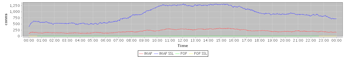 Host zm09.stanford.edu: Mailboxd: Active Connections by Client Protocol