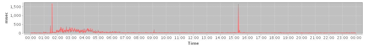 avg(SendMsgRequest) = 402.80 avg(DeleteAccountRequest) = 5069.60 avg(GetAggregateQuotaUsageOnServerRequest) = 1519.00 avg(FolderActionRequest.delete) = 453.00 avg(ForwardAppointmentInviteRequest) = 293.00 avg(SendInviteReplyRequest) = 479.68 avg(ApplyFilterRulesRequest) = 2723.00 avg(FolderActionRequest.empty) = 1591.36 avg(BackupRequest) = 4268.50 avg(GetQuotaUsageRequest) = 4330.00
