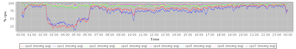 avg(cpu0) = 1.31 avg(cpu1) = 1.31 avg(cpu2) = 0.82 avg(cpu3) = 0.78 avg(cpu4) = 0.59 avg(cpu5) = 0.53 avg(cpu6) = 0.37 avg(cpu7) = 0.34