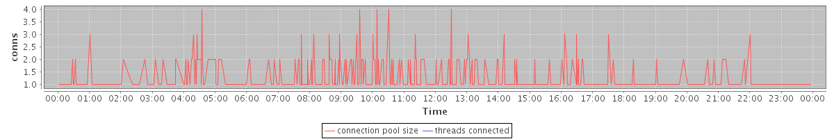 avg(connection pool size) = 0.45 avg(threads connected) = 0.00