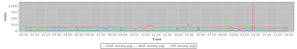 Host zm03.stanford.edu: Mailboxd: Response Time by Client Protocol