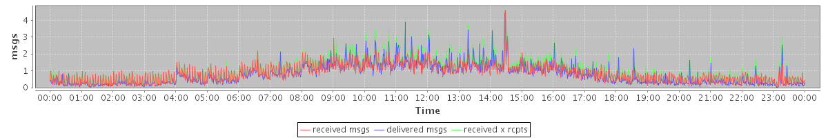 avg(received msgs) = 0.84 avg(delivered msgs) = 0.76 avg(received x rcpts) = 0.97