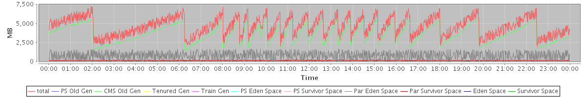 avg(total) = 4623.45 avg(PS Old Gen) = 0.00 avg(CMS Old Gen) = 3651.04 avg(Tenured Gen) = 0.00 avg(Train Gen) = 0.00 avg(PS Eden Space) = 0.00 avg(PS Survivor Space) = 0.00 avg(Par Eden Space) = 818.51 avg(Par Survivor Space) = 153.90 avg(Eden Space) = 0.00 avg(Survivor Space) = 0.00