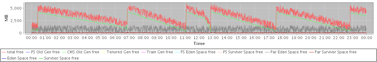 avg(total free) = 3389.76 avg(PS Old Gen free) = 0.00 avg(CMS Old Gen free) = 2528.12 avg(Tenured Gen free) = 0.00 avg(Train Gen free) = 0.00 avg(PS Eden Space free) = 0.00 avg(PS Survivor Space free) = 0.00 avg(Par Eden Space free) = 800.78 avg(Par Survivor Space free) = 60.85 avg(Eden Space free) = 0.00 avg(Survivor Space free) = 0.00